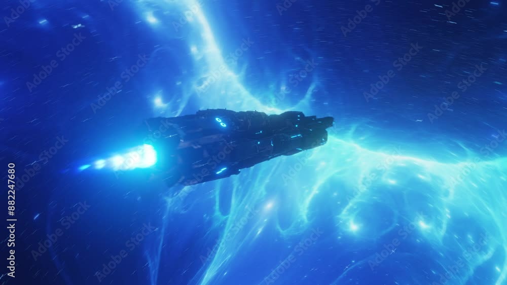 The watermark will not be included on Sticker.: Spaceship travelling into deep space and galaxies and nebula