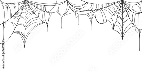 The watermark will not be included on Sticker.: Spider web halloween background border design with copy space on white background, vector illustrati