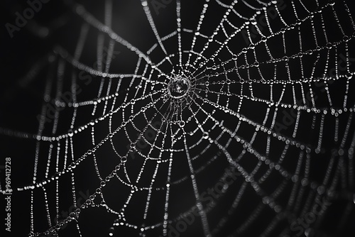 The watermark will not be included on Sticker.: Spider web with dew drops