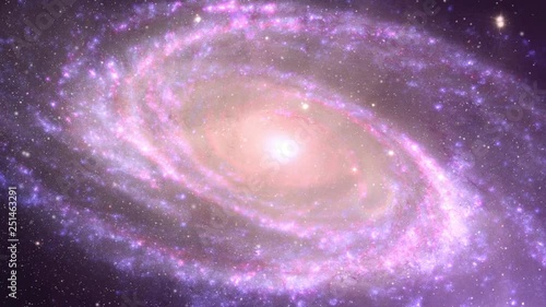 Spiral galaxy rotating in outer space with star field and pink burst flare light - contains public doSticker