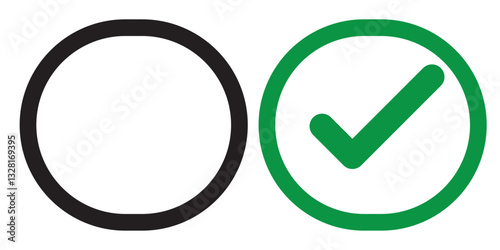 Square checkbox set - blank and checked checkbox stroke line art vector icon for app or website - survSticker