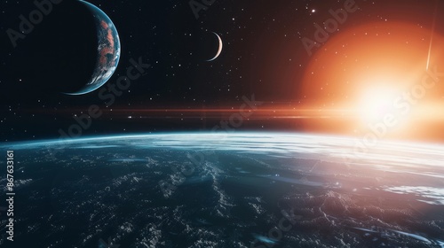 Sticker : Stunning 8k rendering of planets in space with realistic textures and vivid colors, perfect for sci-