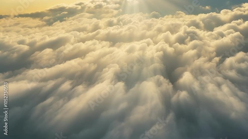 Sticker sunbeams are piercing the clouds, creating a beautiful and surreal atmosphere. the clouds are moving