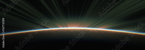 The watermark will not be included on Sticker.: Sunrise from space aurora, 3d rendering