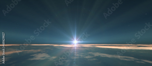 The watermark will not be included on Sticker.: Sunrise from space aurora, 3d rendering