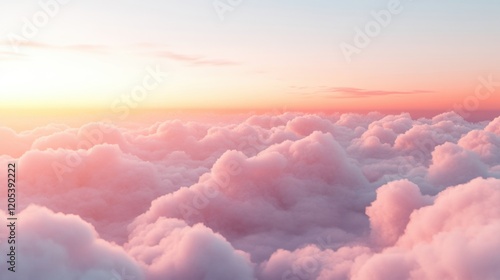 Sticker : Sunrise over soft pink clouds creating a serene atmosphere in the sky at dawn