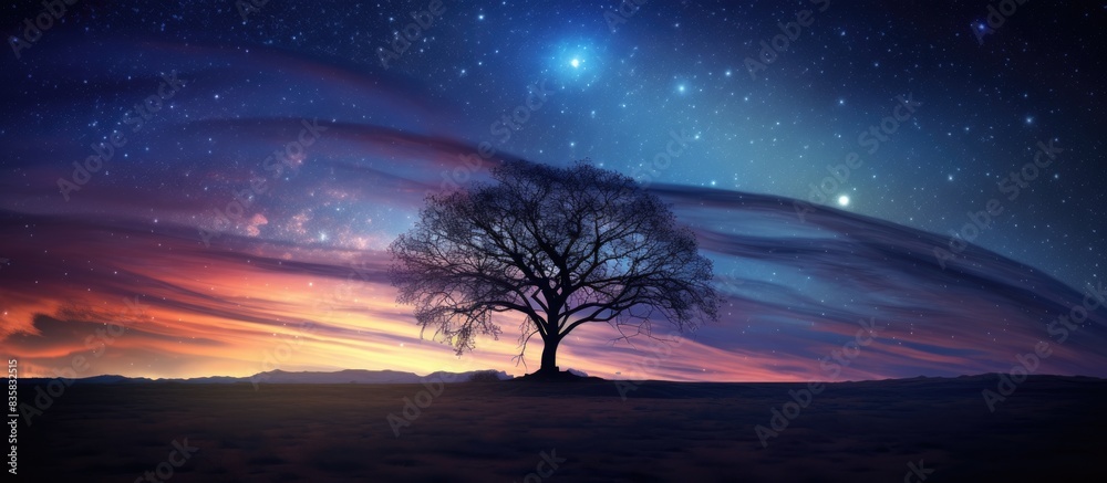 Sticker : Sunset with starry sky in a photograph with copy space image -