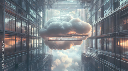Sticker : Surreal architecture with a giant cloud inside a metallic room - generative ai image - [dream architec