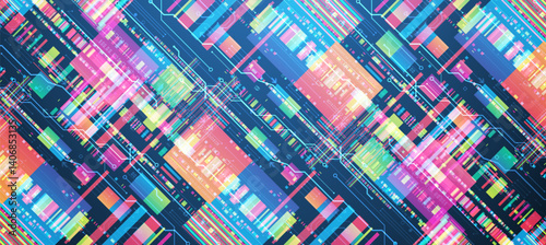 Sticker technological background with colorful squares glowing on a blue gradient. - Stickers Sticker technological background with colorful squares glowing on a blue gradient. - Stickers