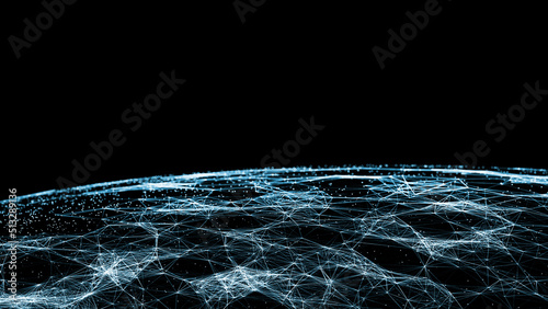 The watermark will not be included on Sticker.: Technology background transmission lines earth/connection lines around earth globe - global internati