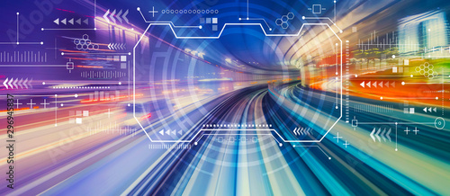 Sticker technology screen with abstract high speed technology pov motion blur