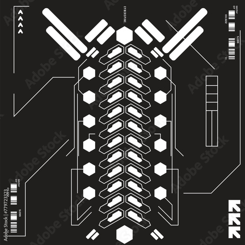 The watermark will not be included on Sticker.: Techwear for cyberpunk scifi gaming seamless pattern sticker template with collection set, 2d vector