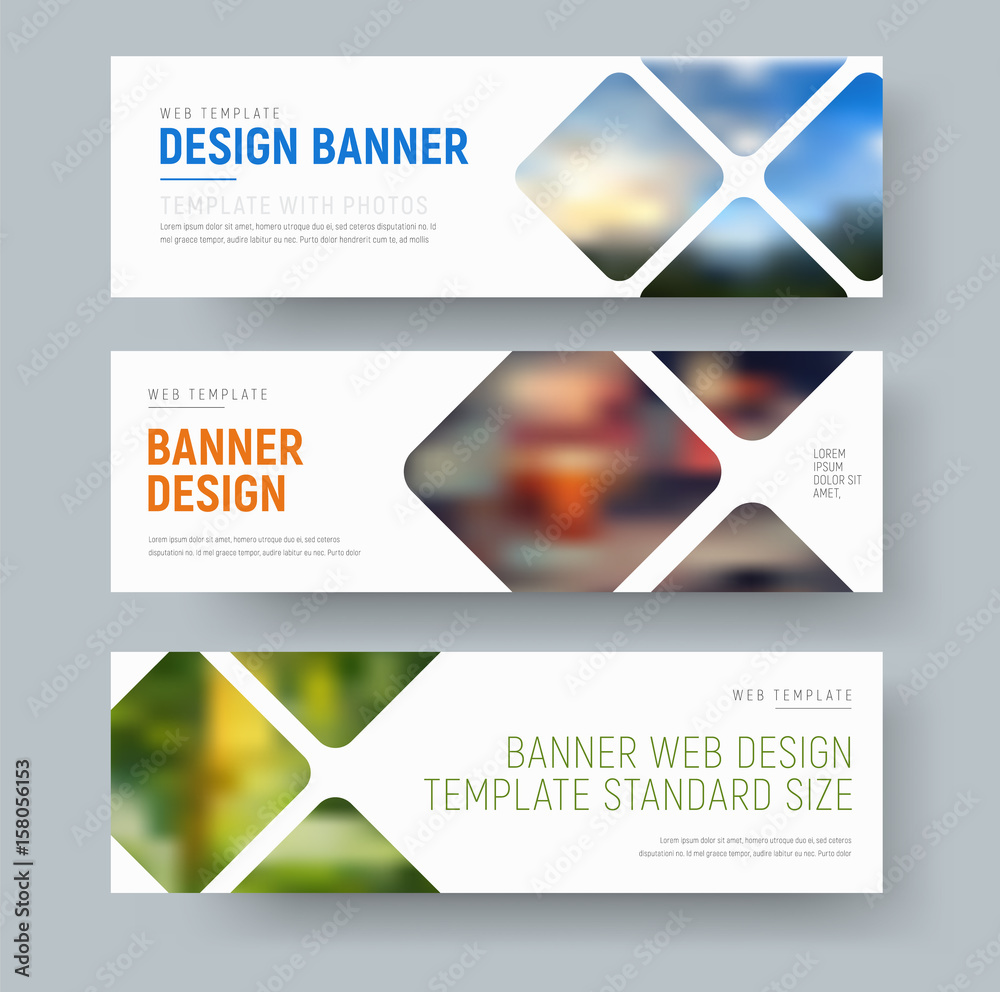 The watermark will not be included on Sticker.: Template of horizontal standard banners with rhombuses for the image -