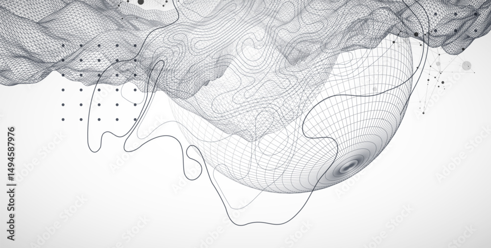 The watermark will not be included on Sticker.: The abstract wave is made in a frame style - template for science and technology presentation - sphere