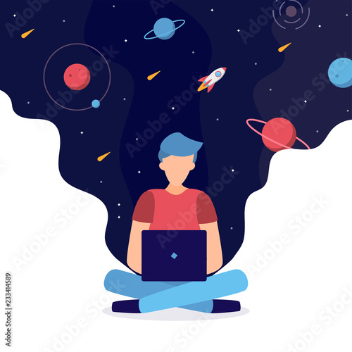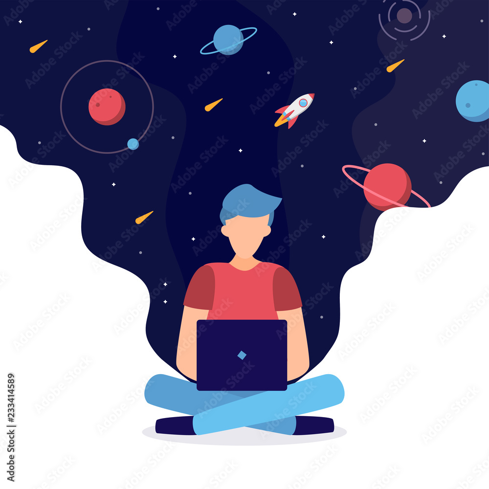 Sticker the developer is working on a laptop in the lotus position. around him space. programming, creation  - Stickers Sticker the developer is working on a laptop in the lotus position. around him space. programming, creation - Stickers