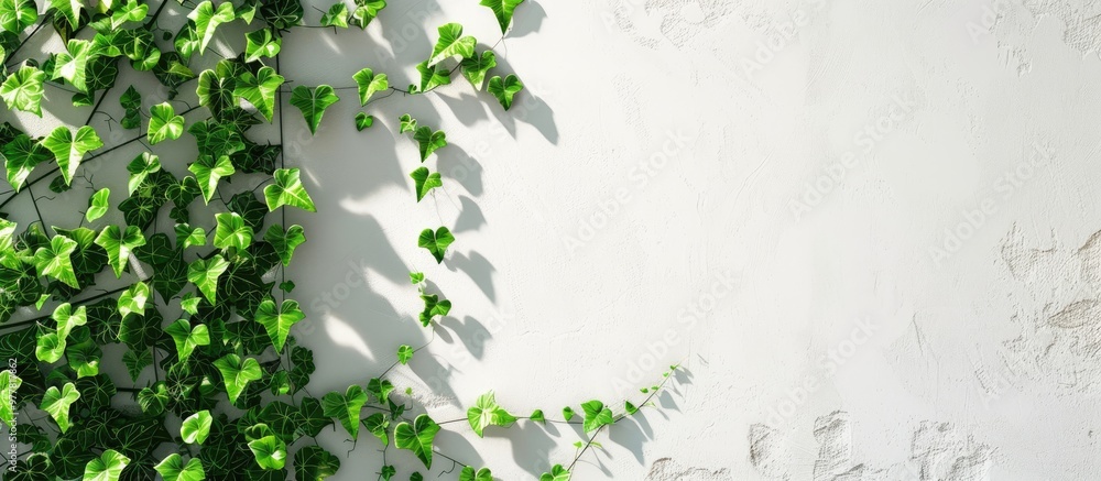 Sticker the green ivy against a white wall forms a lovely backdrop. copy space image. place for adding text