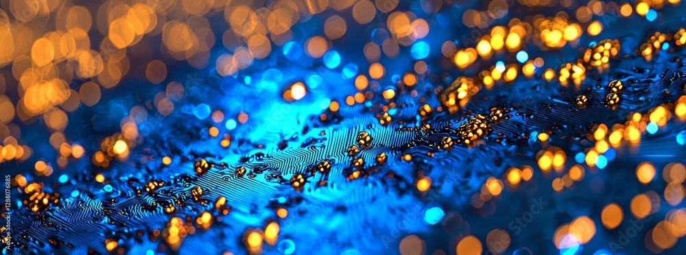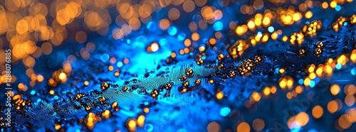 The image of a computer chip with blue and orange lights embodies a futuristic digital circuit with Sticker