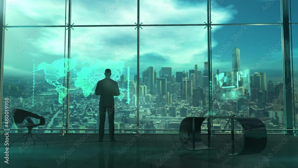 Sticker : The man works with the geolocation systems of the future, 3d render -