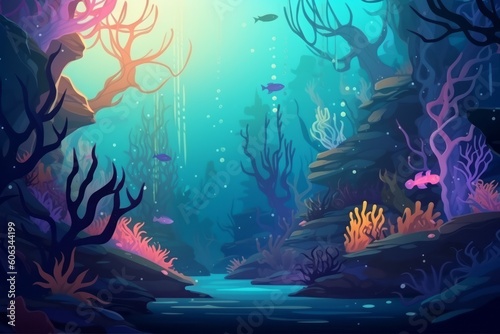 Sticker the seabed with fish and reef background ilustration. generative ai