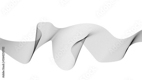 The watermark will not be included on Sticker.: Thin wavy line abstract background - wavy line horizontal divider outline minimalist background - tech