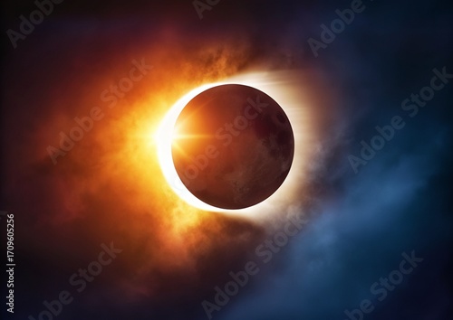 The watermark will not be included on Sticker.: This ai-generated image portrays a solar eclipse, a celestial event where the moon passes between th