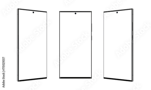 Sticker three positions of a modern square shape smartphone with thin, sharp edges, transparent