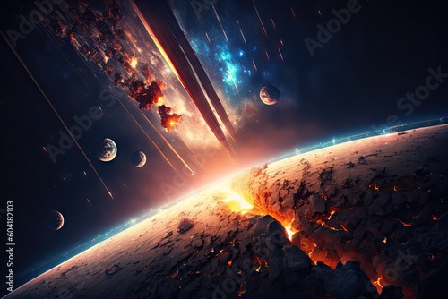 The watermark will not be included on Sticker.: Tilt shifted aerial view of earths atmosphere in space - generative ai aig15 -