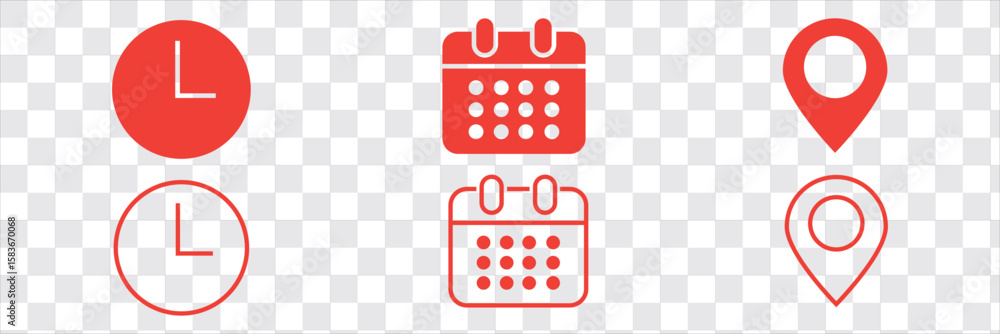 The watermark will not be included on Sticker.: Time date address icon set collection vector illustration - event icons vector - location, calendar &