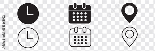 The watermark will not be included on Sticker.: Time date address icon set collection vector illustration - event icons vector - location, calendar &