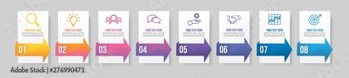 The watermark will not be included on Sticker.: Timeline infographic design template with 8 options steps - start to goal line process - used for info