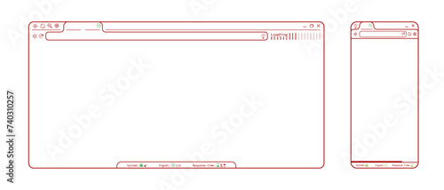 The watermark will not be included on Sticker.: Transparent internet browser phone app webpage, blank website template vector design - editable lines