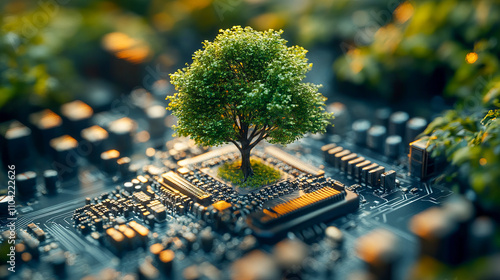 Sticker : Tree growing from circuit board - symbol of technology and nature integration