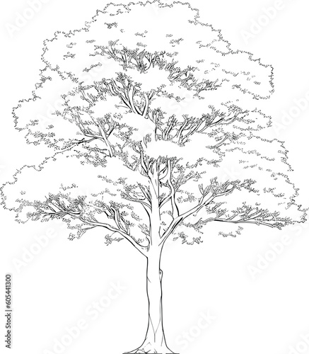 Sticker : Tree line drawing, side view, set of graphics trees elements outline symbol for architecture and lan
