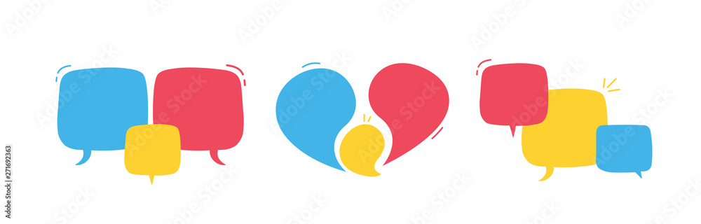 The watermark will not be included on Sticker.: Trendy hand drawn abstract geometric bubbles - vector doodle banner set for your text with various co