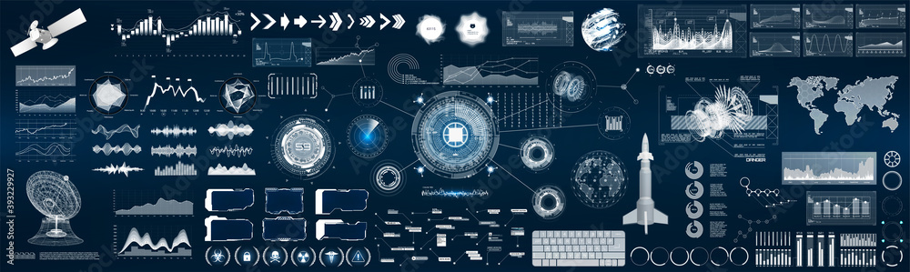 Ui, hud, gui big elements collection - futuristic interface set for vr, game and web design - hud elemSticker
