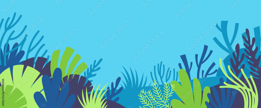 The watermark will not be included on Sticker.: Vector horizontal abstract background with copy space for text, abstract cover header with plants an