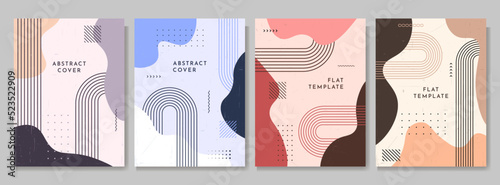 The watermark will not be included on Sticker.: Vector illustration - set of abstract modern art backgrounds - simple geometric shapes - lines and wave