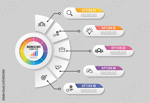 Vector infographic design template with 5 options steps and marketing icons - business data visualizaSticker
