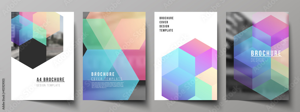 The watermark will not be included on Sticker.: Vector layout of a4 format cover mockups design templates with abstract shapes and colors for brochu