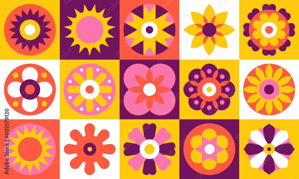 The watermark will not be included on Sticker.: Vector set of abstract creative backgrounds in minimal trendy style with geometric flowers - design