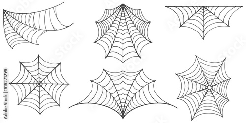 The watermark will not be included on Sticker.: Vector set of spider web on white