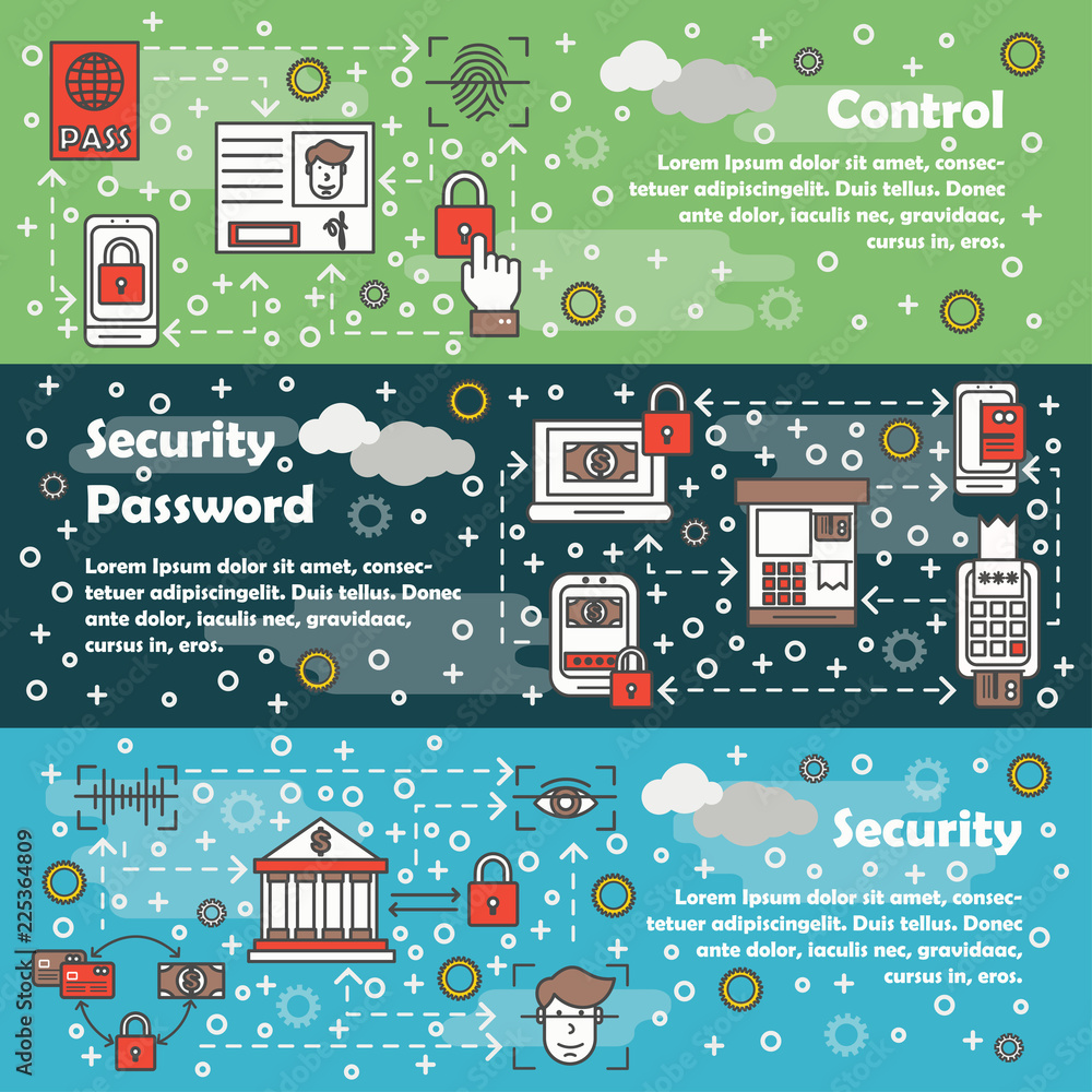 The watermark will not be included on Sticker.: Vector thin line security web banner template set