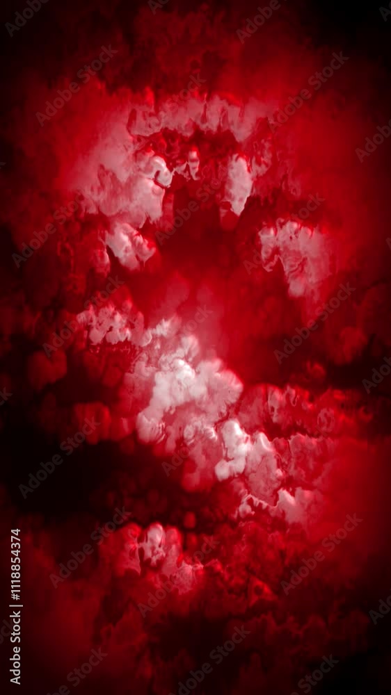 The watermark will not be included on Sticker.: Vertical glassy red cloudy abstract background 4k loop features cloudy glassy formations moving and