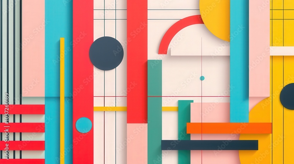 The watermark will not be included on Sticker.: Vibrant abstract grid, a dynamic composition of colorful lines and shapes creating a captivating vis