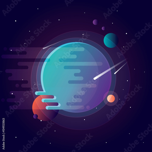 Sticker : Vibrant colorful planets with falling comets - universe vector illustration in flat design style
