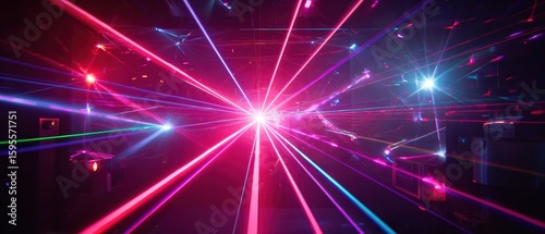 Vibrant laser show with colorful beams in a dark room, creating a dynamic and energetic atmosphere cSticker