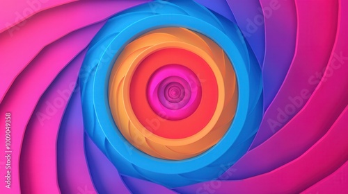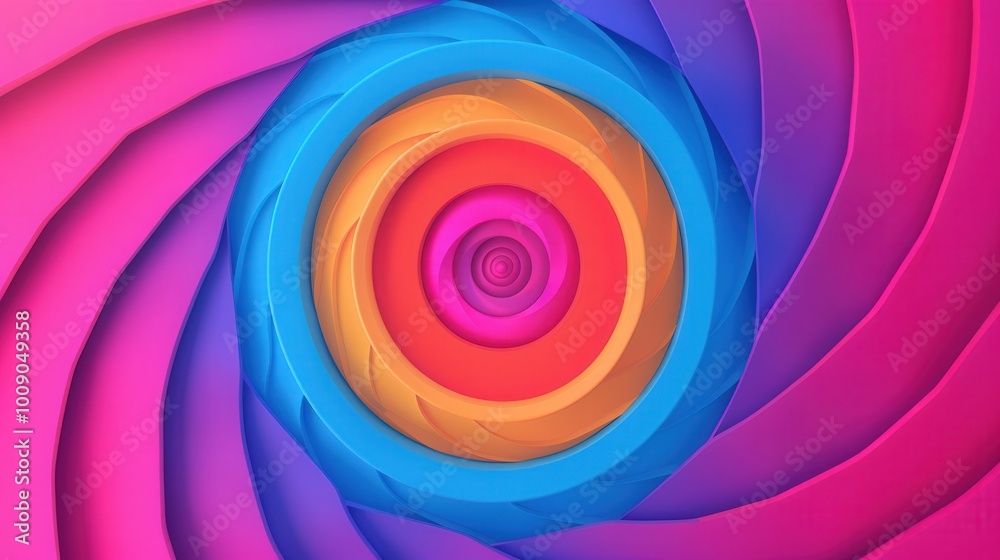 The watermark will not be included on Sticker.: Vibrant spirals in an abstract setting, showcasing a dynamic flat design with a colorful interplay o