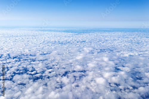 The watermark will not be included on Sticker.: View of a cloud with a blue sky from the window - with space to copy text