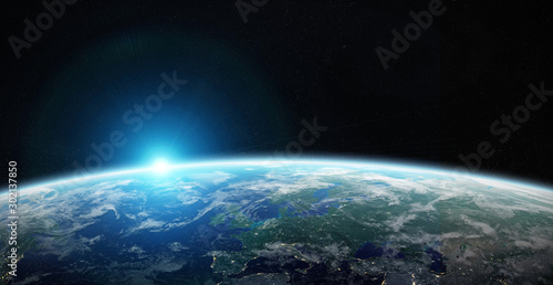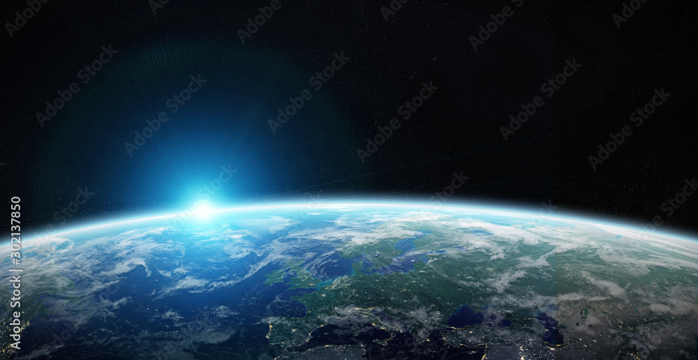 Sticker : View of blue planet earth in space 3d rendering elements of this image furnished by nasa