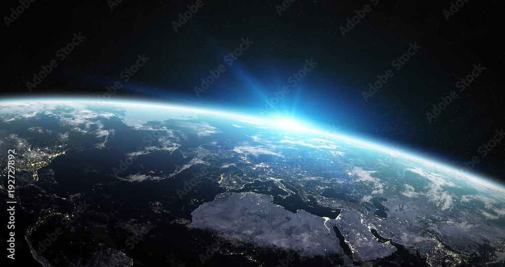 View of blue planet earth in space 3d rendering elements of this image furnished by nasaSticker